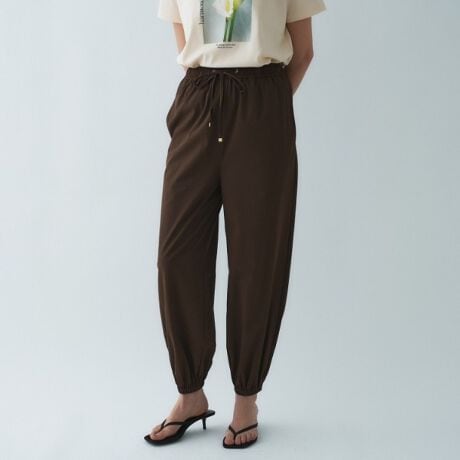 ・裾のゴム仕様が足首をすっきり見せ、メリハリのあるシルエットを演出。