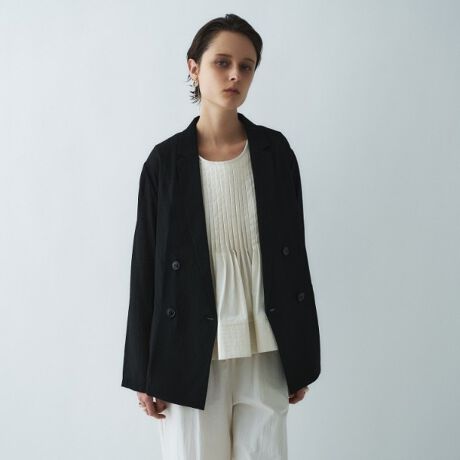 ・ゆったりとした抜け感がありながら、ダブルブレスト仕様できちんと感も兼ね備えたデザインです。