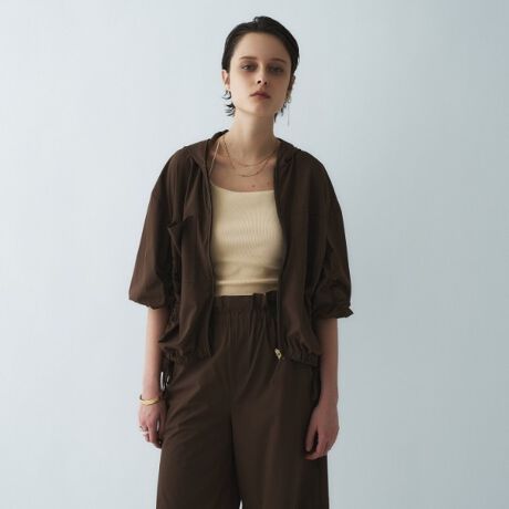 ・同素材のパンツと合わせたセットアップスタイルで、レジャーシーンにも活躍します。