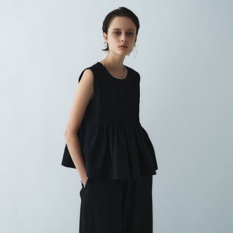 ・フロントに施した繊細なプリーツが印象的なノースリーブブラウスです。