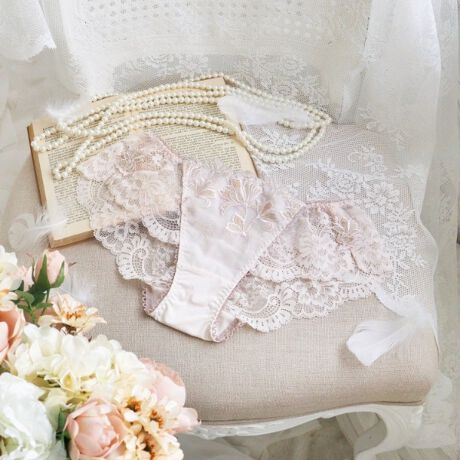 後身生地は総レースになっており、伸縮性のあるレースが肌に心地よくフィットします。足口にはゴムを使っていないので食い込まず、少しゆとりをもった履き心地です。ボトムスへもショーツラインが響きません。通気性がよく、快適にご着用いただけます。甘すぎず、大胆過ぎない特別感あふれるデザインが、ラグジュアリーな大人の雰囲気を演出します。