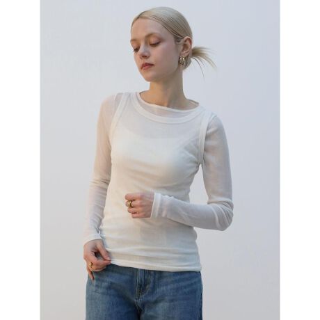 素肌に溶け込むような、繊細なシアー感が魅力のカットソー。ミニマルなデザインだからこそ、レイヤードにも一枚着にも活躍。コンパクトで優しく身体にフィットするストレッチ性も魅力。同素材のタンクトップとのレイヤードスタイルはもちろん、単品使いでジャケットやシャツのインナーとしても映える、大人のためのベーシックアイテムです。