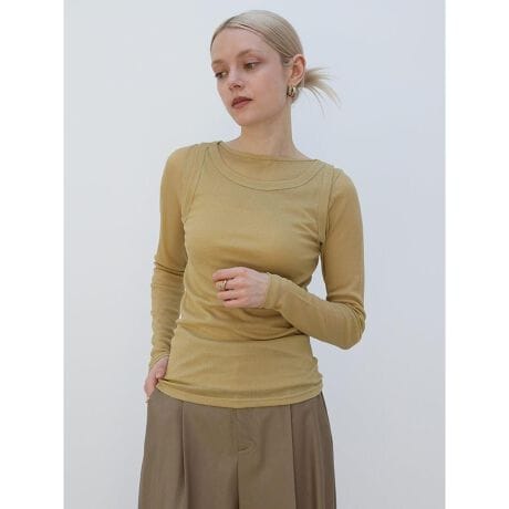 素肌に溶け込むような、繊細なシアー感が魅力のカットソー。ミニマルなデザインだからこそ、レイヤードにも一枚着にも活躍。コンパクトで優しく身体にフィットするストレッチ性も魅力。同素材のタンクトップとのレイヤードスタイルはもちろん、単品使いでジャケットやシャツのインナーとしても映える、大人のためのベーシックアイテムです。