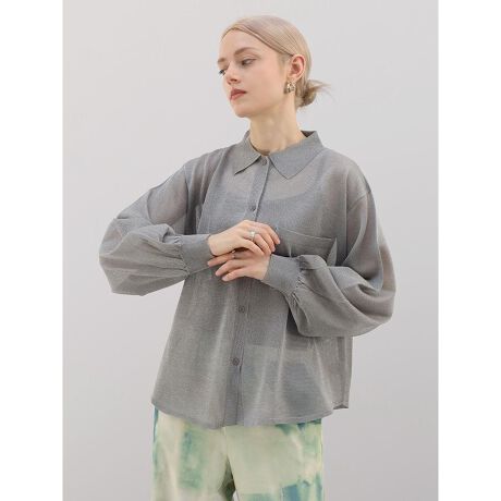 ほんのり透ける軽やかさが、スタイリングに自然な奥行きと抜け感を与えるシアーシャツ。袖口はリブでシルエットでメリハリをつけ、丸みを帯びたややボリュームある袖が女性らしい印象に。ゆとりのあるシルエットとミニマルなデザインが、大人らしい余白を演出。一枚ではもちろん、インナーとのレイヤードも楽しめる、着回し力の高いアイテムです。