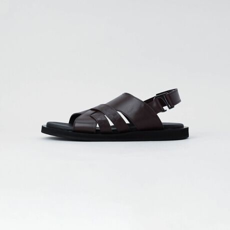 [型番:07-50ZO07-206]《デザイン》クロスしたデザインが特長のレザーサンダルです。かかとのストラップがベルクロ仕様になりジャストフィットで調節できフック型の金具により、脱ぎ履きが楽な仕様になっています。最初はややきつく感じると思いますが、履いていくうちに馴染むので小さめがおすすめです。《素材》厚みがあり、丈夫な成牛の革(ステアレザー)に、市松柄の型押しを入れた素材です。艶感があり、経年により柔らかくなじむのが特長の素材です。