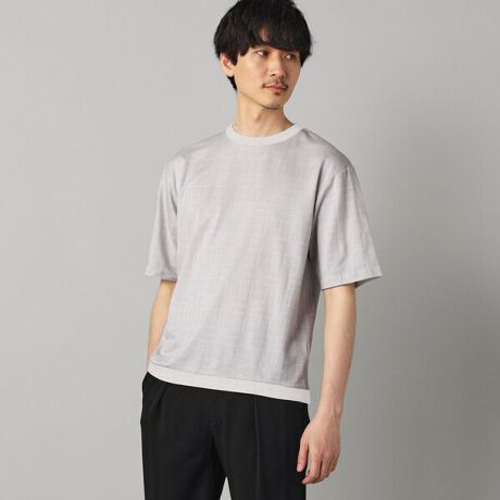 チェック柄と裾リブ使いがポイントのTシャツです。
