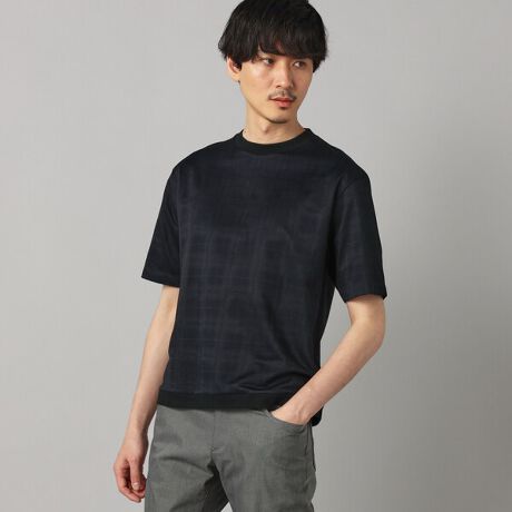 チェック柄と裾リブ使いがポイントのTシャツです。