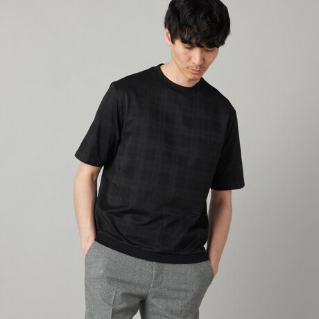 チェック柄と裾リブ使いがポイントのTシャツです。