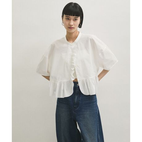 ゆったりとしたコクーンスリーブとフロントのフリルが魅力的なブラウス。