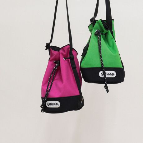 ・配色デザインが目を惹くバイカラーの巾着ショルダーバッグ