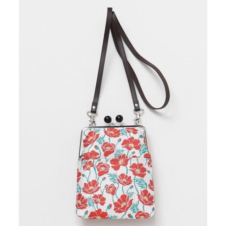 [型番:7JMP6105-2026]春の花々をモチーフにした、昭和モダンな雰囲気漂う玉付きがま口。ミモザやポピー、パンジーなど季節の彩りを上品に描いたデザインが魅力です。スマホや御朱印帳が収まるサイズ感で、外ポケット付きなのも便利。丸玉の留め具が可愛らしく、普段使いからお出かけ、和装コーデにも映える上品なデザインです。