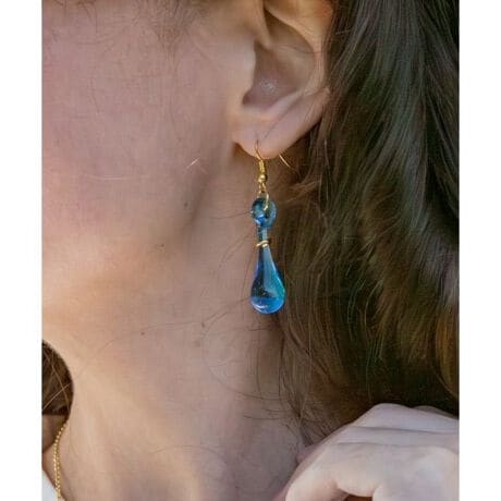 [型番:LEIZ6606-2026]耳元で揺れるしずく型ヴェネチアングラスが印象的なピアス。鮮やかな彩りと光の反射が美しく、身に着けるだけで装いがぱっと華やぐアート感あふれるアイテム。