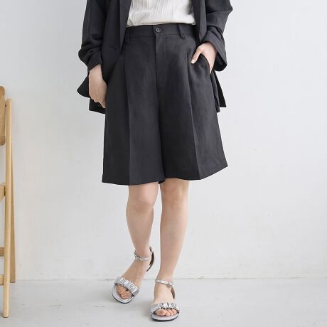大注目のショートパンツを、リネンレーヨン素材で上品に仕上げました。