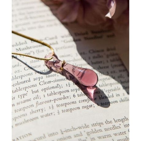 [型番:LEIZ6605-2026]しずく型のヴェネチアングラスが印象的なネックレス。深みある色合いと存在感あるフォルムが、装いにクラシカルなムードをプラス。ヨーロッパの空気を感じるアクセント。