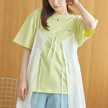キャミワンピースを重ねたレイヤードスタイルも楽しめます。