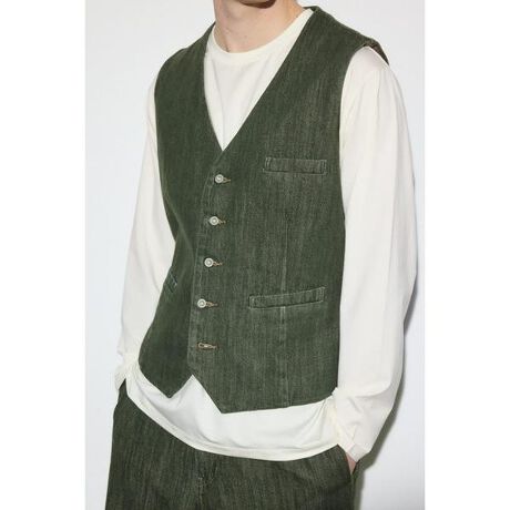■リラックスデニムベスト■ポイントリラックスシルエットのデニムベストです。■ディテールワーク由来の素朴な表情と、甘撚りのインディゴデニムによる程よい柔らかさで、抜け感のあるレイヤードを作ります。カラーは定番のワンウォッシュとカーキの2色展開。ワークテイストのポケットやステッチワークを落とし込み、リラックスフィットで動きやすさも兼ね備えています。■スタイリングシャツや薄手ニットの上にレイヤードして胸元にアクセントを。同素材のデニムパンツ(251JSR11-0911 リラックスデニムスラックス)、カバーオール(251JSR10-3471 リラックスデニムカバーオール)と合わせた3点セットアップスタイルもおすすめです。Tシャツ+チノパンツのカジュアルコーディネートから、シャツをタックインしたきれいめカジュアルまで幅広く対応。季節の変わり目の軽い羽織りとしても活躍します。■生地11.7oz インディゴデニム(甘撚り)を使用。透け感:なし裏 地:なし伸縮性:なし光沢感:なし[注意事項]※画像の商品はサンプルです。実際の商品と仕様、加工が若干異なる場合があります。※画像の商品は光の照射や角度、お使いのモニター環境により、実物と色味が異なる場合がございます。※着用、お取り扱いの際は、アテンションタグをご確認ください。