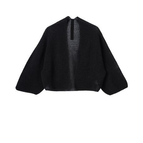 ホールガーメントで編み上げられたボレロは、無縫製ならではの滑らかな着心地と美しいシルエットが魅力です。シアーなメッシュ編みが軽やかな表情を演出し、程よい透け感がスタイリングに奥行きと品を添えます。肌寒い時や日差しが気になる時にさっと羽織れ、季節の変わり目にも活躍。いつもの装いに洗練された印象をもたらす一着です。