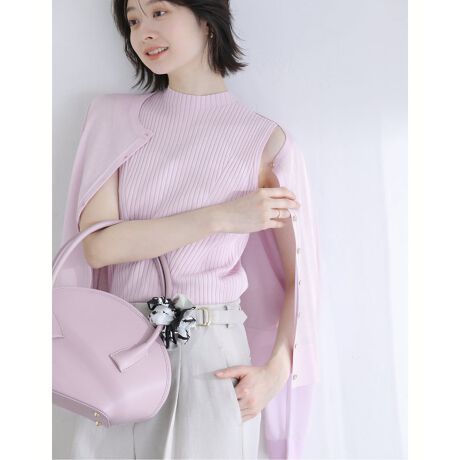 コンパクトなリブニットは一枚でも着やすく、セットでも単品でも活躍。