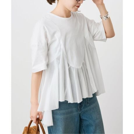 日常のカットソーを、ロマンティックな主役級の一枚へ。異素材が奏でる洗練のペプラムTシャツ。