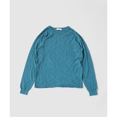 シンプルなクルーネックデザインながら、全体にほんのり表情のあるスラブ編みが存在感を放つロングスリーブニット。
