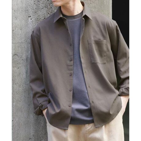 表面に細かなシボ感のあるヨウリュウ素材を使用したレギュラーカラーシャツ。生地の凹凸により肌に触れる面積が少なく、汗ばむ季節でもベタつきにくいさらりとした着心地が魅力です。シンプルな無地デザインながら、独特の表情がコーディネートに奥行きをプラス。程よくゆとりのあるシルエットで、リラックス感のある今の気分に合った着こなしが楽しめます。一枚での着用はもちろん、羽織りとしても活躍する汎用性の高さもポイント。デイリーからきれいめスタイルまで幅広く取り入れやすい、大人のカジュアルシャツです。