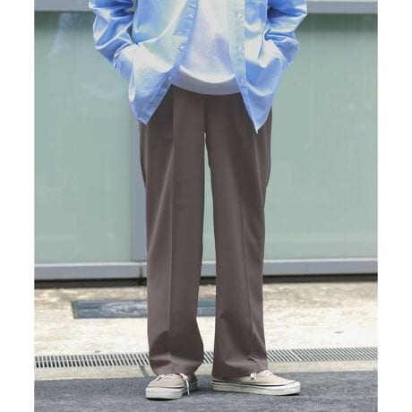 表面に細かなシボ感のあるヨウリュウ素材を使用したテーパードパンツ。生地の凹凸により肌に触れる面積が少なく、汗ばむ季節でもベタつきにくいさらりとした穿き心地が魅力です。腰まわりに程よいゆとりを生む1タック仕様で、リラックス感がありながらも上品な印象に。裾に向かってすっきり細くなるテーパードシルエットが脚のラインをきれいに見せ、バランスの良いスタイルを演出します。シンプルながら素材の表情がコーディネートに奥行きをプラスし、カジュアルからきれいめまで幅広く活躍する一本です。