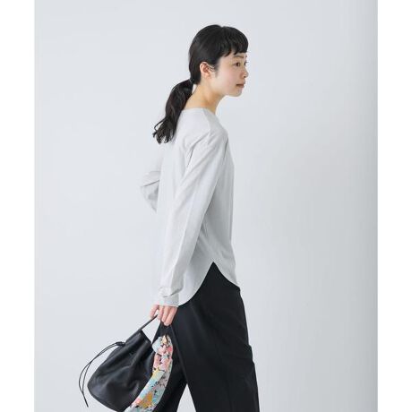 細番手の綿をハイゲージに優しく編み立てた生地を使用しています。サラッとした手触りと穏やかな透け具合が特徴です。程よくゆとりがあり、上半身のラインを拾いすぎないのも嬉しいポイント。ラウンドヘムのさり気ないデザインが抜け感を生みます。タックイン/アウトどちらのスタイリングにも映える1枚。ごわつかないので、ニットやスウェットのインナーとしても便利なアイテム。1枚あると日々の着こなしに何かと重宝します。