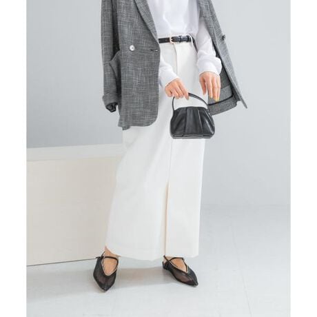中空糸を織り込んだストレッチツイル素材は、驚くほど軽くドライな肌当たり。吸水速乾性に優れているため、汗ばむ季節でも肌離れが良く、一日中快適に過ごせます。パンツのような前開きの仕立てが、程よくカジュアルな抜け感を演出。深いスリットを施しているため、足さばきもスムーズです。付属の本革ベルトをさらりと巻くだけで、洗練されたトレンド感をプラス。足元はパンプスからスニーカーまでテイストを選ばない1着です。