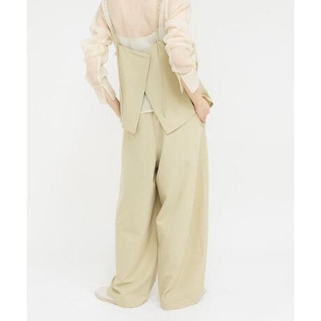 ウエストにギャザーが施されたヘルシーな印象のキャミソールと、楽な穿き心地が叶うパンツがセットになったアイテム。キャミソールは肩紐やバック釦が付いているので調整可能、さりげなく入ったスリットが抜け感を演出します。セット使いはもちろん、合わせるアイテム次第で幅広い着こなしが楽しめます。
