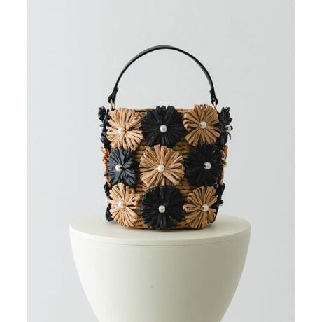 バッグ全体にあしらわれたフラワーモチーフがポイント。中央に配されたパールが上品なアクセントになり、カゴバッグ特有のカジュアルさを程よく抑えた大人な雰囲気を演出してくれます。