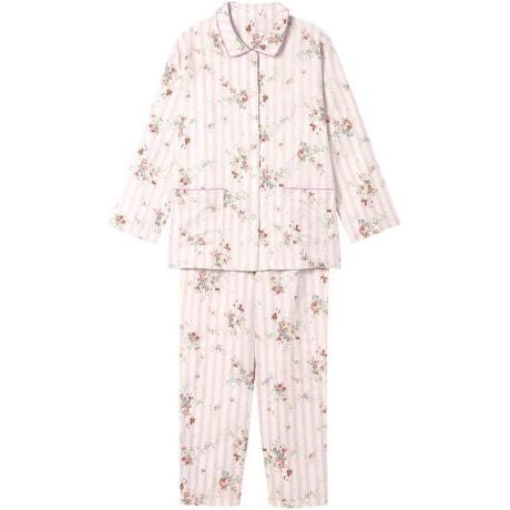 [型番:KDX520]・本体に、綿100%の二重ガーゼ素材を使用・通気性がよくさらっと快適・吸汗速乾性があり汗をかいても乾きやすい・ふんわりやさしい肌ざわり・ナチュラルなイメージのストライプ柄と動きのあるローズモチーフの組み合わせが新鮮・すっきりとした印象の襟付きデザイン※お洗濯は、必ず「取扱い表示」にしたがってください。