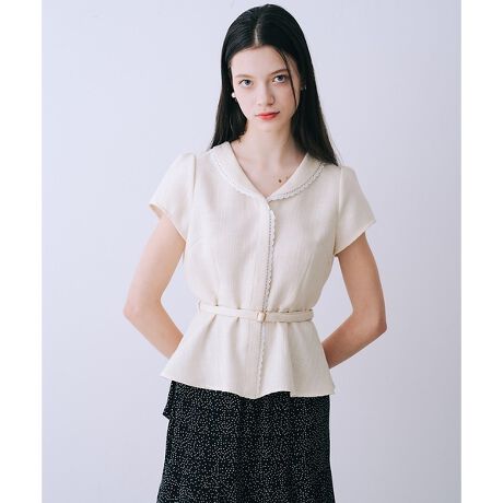 ツイードベルト付半袖ペプラムブラウス【予約】