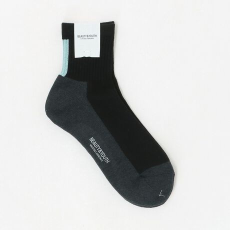かかとのラインデザインが印象的な、ベーシックながらも存在感のあるリブ編みクウォーター丈ソックス。