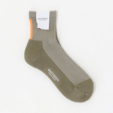 かかとのラインデザインが印象的な、ベーシックながらも存在感のあるリブ編みクウォーター丈ソックス。