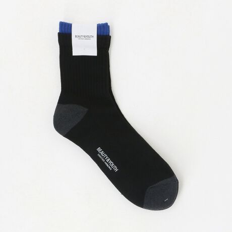 履き口部分を2枚仕立てに重ね、覗く配色の編地がさりげないアクセントになるデザインです。