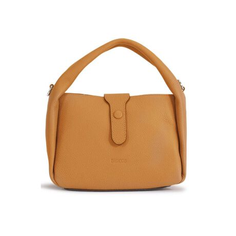 シンプルで洗練されたデザインが魅力の牛革ハンドバッグ。