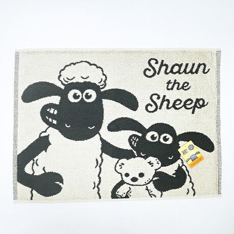 綿100%のしっかりとしたバスマットです。しっかりと水分を吸ってくれます。ショーンのカワイイイラストもポイントです。