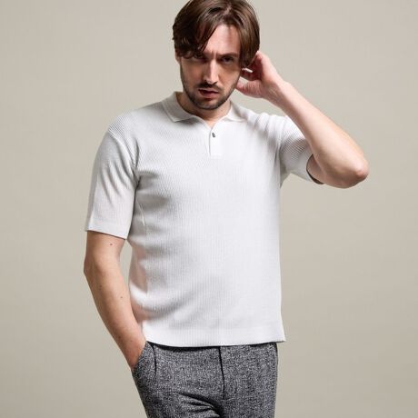 12Gハイゲージで編み立てた半袖スキッパーニットポロシャツになります。