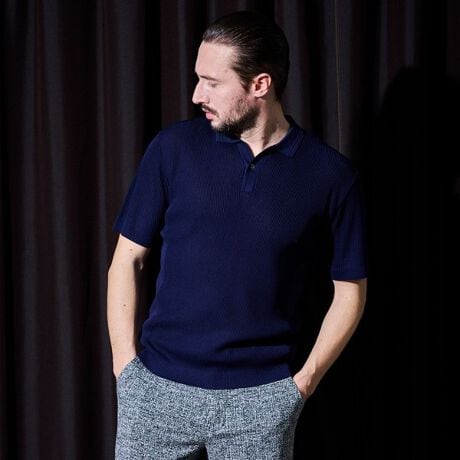 12Gハイゲージで編み立てた半袖スキッパーニットポロシャツになります。