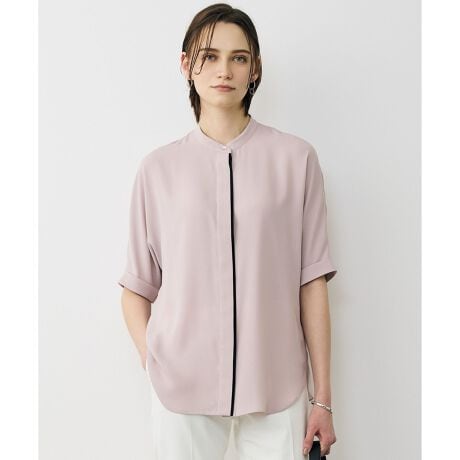 ■デザイン前立ての配色デザインが目を惹く、5分袖バンドカラーブラウスです。ゆとりのある五分袖デザインで、気になる二の腕がしっかり隠せるのも嬉しいポイント。機能性素材で着心地も良く、普段使いからリモートワーク、オフィスシーンまで幅広く活躍します。