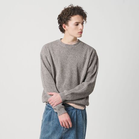 ポリエステル×リネンの清涼感ある糸で編み立てた、ほんのりシアーで立体感のある表情が、着こなしに軽やかな抜け感と上品なデザイン性を添えてくれます。