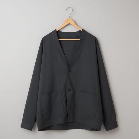 〇これからのシーズンに嬉しい、吸水速乾・防シワ・UVカットを備えたマルチ機能付きノーカラージャケット。