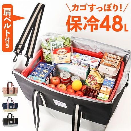 【レジカゴが丸ごと入る保冷バッグ】お買い物、アウトドア、運動会など幅広く使えて大容量「レジまるクーラーバッグ」【カゴがすっぽり入る大きさ】約48Lの大容量でレジカゴが丸ごとすっぽり入る毎日のお買い物に頼れる保冷バッグ◎【詰め替え不要で時短お買い物】レジカゴにそのままセットするだけで面倒な袋詰めの手間がなくなる嬉しいお買い物の味方♪【コンパクト収納で持ち運び自在】使わないときはパっとたためて約6cmの薄さになるから収納場所にも困らず便利◎【シームレスで汚れに強い】内側はEVA素材によるシームレス構造で汚れてもサッとひと拭きのラクラクお手入れ。※完全防水ではありません。【重さに合わせて持ち方チェンジ】手持ちはもちろん、付属のベルトでショルダーバッグにもなる頼もしい2WAY仕様♪