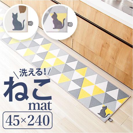 【猫と暮らす癒しキッチン】パステル×猫モチーフの洗えるロングマットで毎日を心地よく。【240cmのロングサイズ】横幅240cmのゆとりあるサイズで広めキッチンの足元も一枚でしっかりカバー◎【パステル猫柄に心ときめく】やわらかなパステルカラーに愛らしい猫モチーフがキッチンを毎日華やかに彩るデザイン。【丸洗いOKで清潔キープ】汚れやすいキッチンでも洗濯機でそのまま丸洗いできるからいつでも清潔を保てる♪【裏面すべり止めで安全】料理中の足元をしっかり固定してくれる滑り止め加工つきで小さなお子さまがいても安心〇