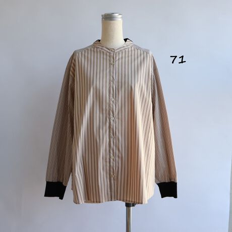 2種類のストライプを切り替えたリブ付きシャツ。
