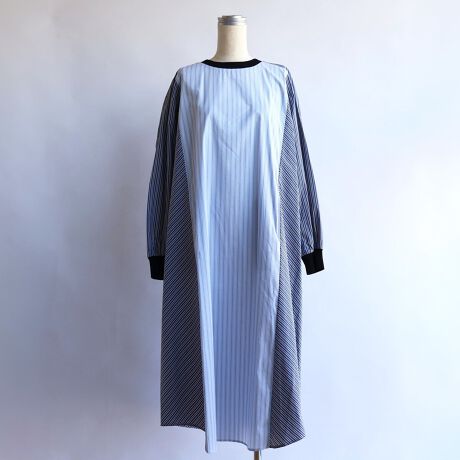 2種類のストライプを切り替えたリブ付きワンピース。