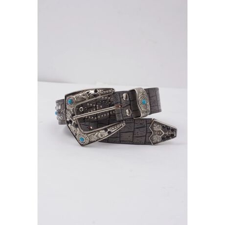 ツートン染めで仕上げたクロコ型押しレザーに、墨入れ加工を施したニッケルバックルを組み合わせ、重厚かつワイルドな印象に昇華。