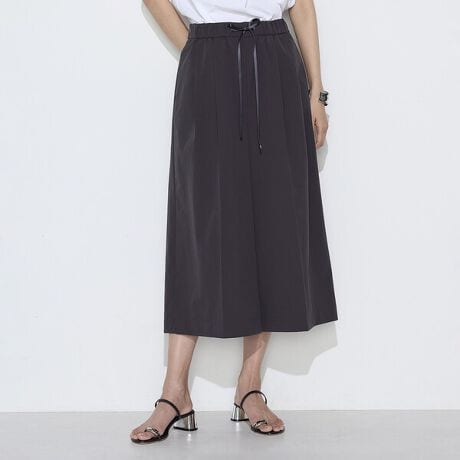 キュロットのパターンを用い、フロントに二つのタックとセンタープレスを施すことで、縦のラインを強調したフェミニンなシルエットに仕上げています。