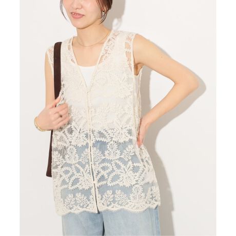 ◆華やかな印象のレース素材がスタイリングのアクセントになるレースベスト