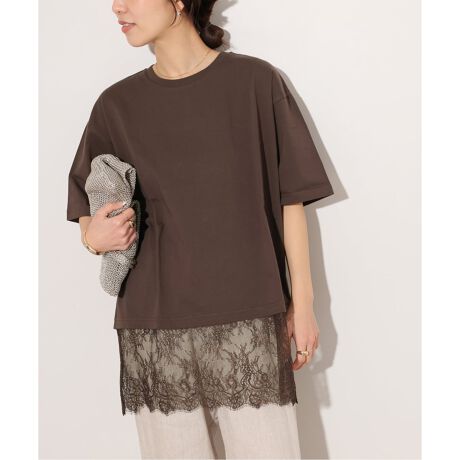 透けないコーマコットン生地フォルムが保てるキレイ目生地のレースヘムTEEです。